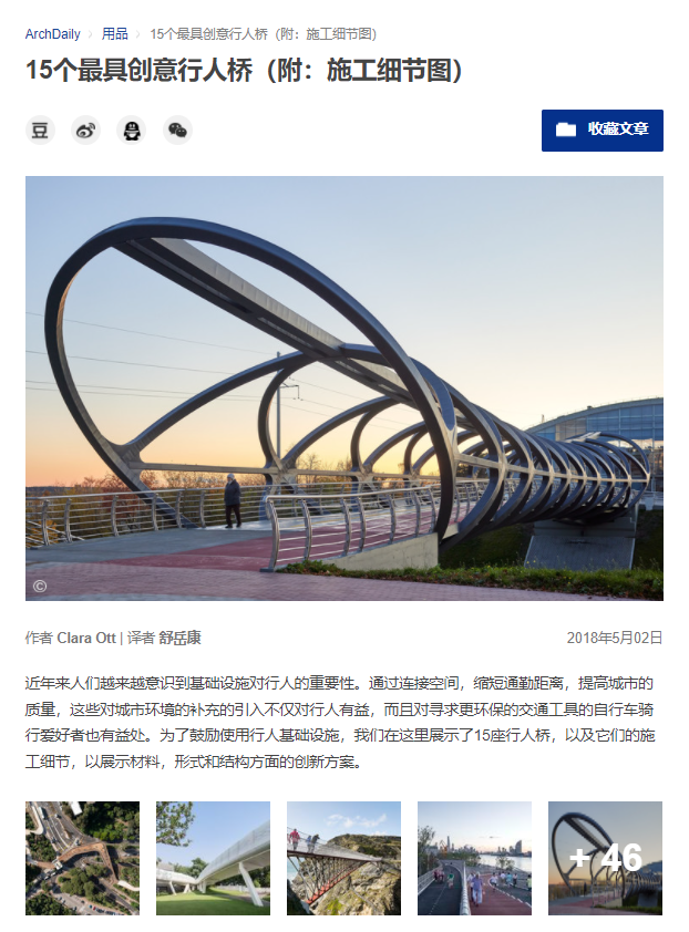 Archdaily丨“如意桥”入选“创新人行天桥及其构造细节”合辑