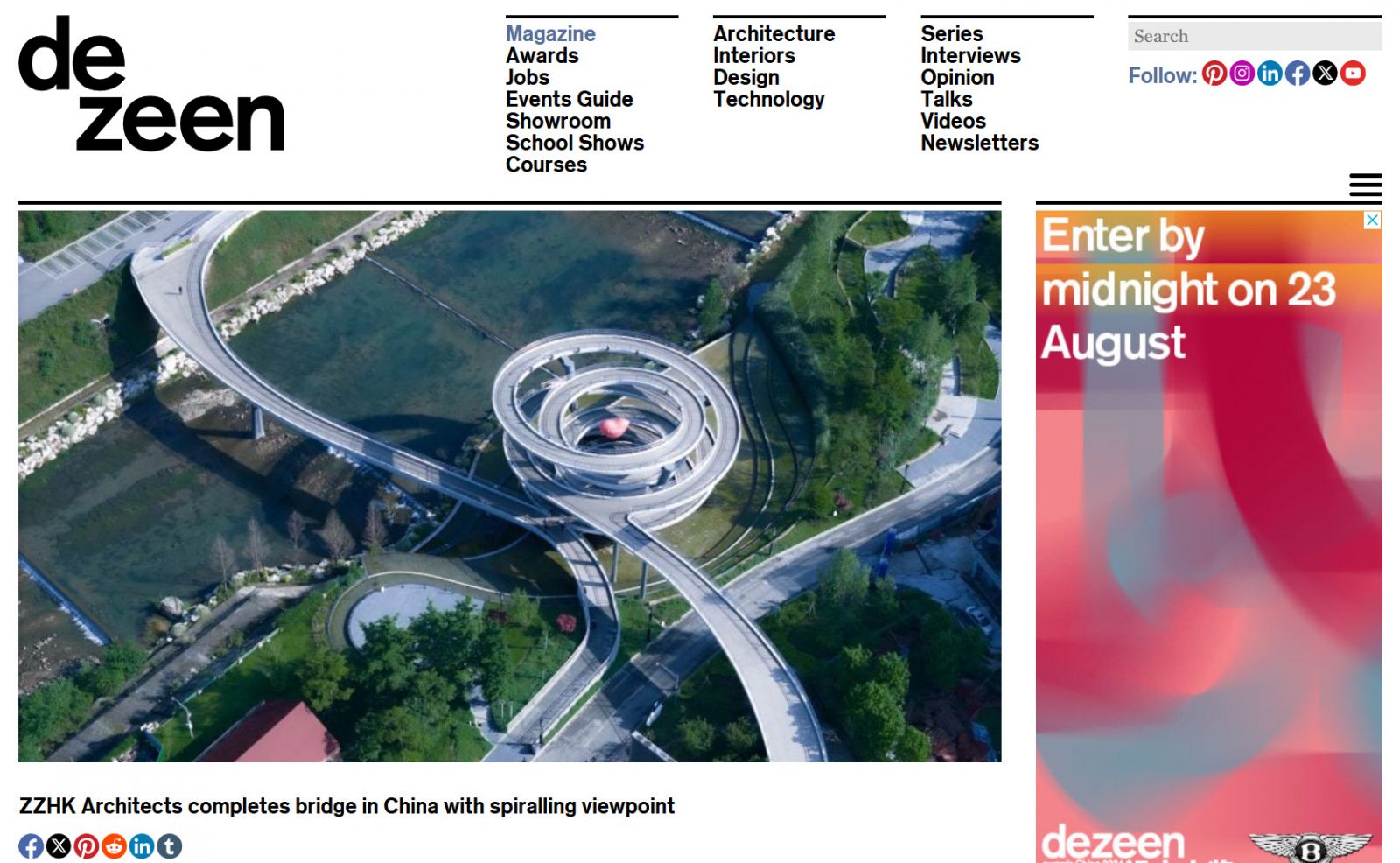 全球最受欢迎的设计杂志 Dezeen 头条发表ZZHK项目“音缘桥”及专访