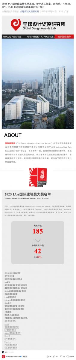 全球设计奖项研究所 | 2025 IAA国际建筑奖名单上篇,罗宇杰工作室、浙大院、Aedas、KPF、扎哈·哈迪德建筑师事务所等上榜!
